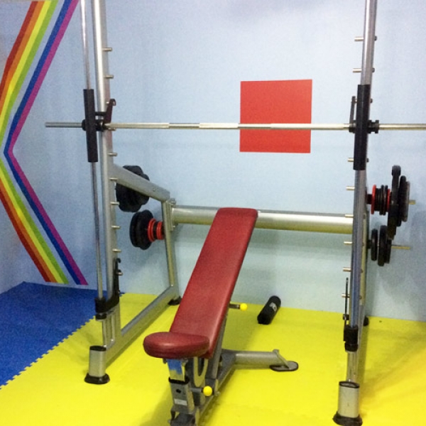 -Un plateau de musculation avec DE NOMBREUX appareils PROFESSIONNELS pour un renforcement complet ( adducteurs, abducteurs, pectoraux, abdos, cuisses, fessiers, bros, dos...) + du petit matériel (élastic band, swiss ball, médecin-ball, trx...)